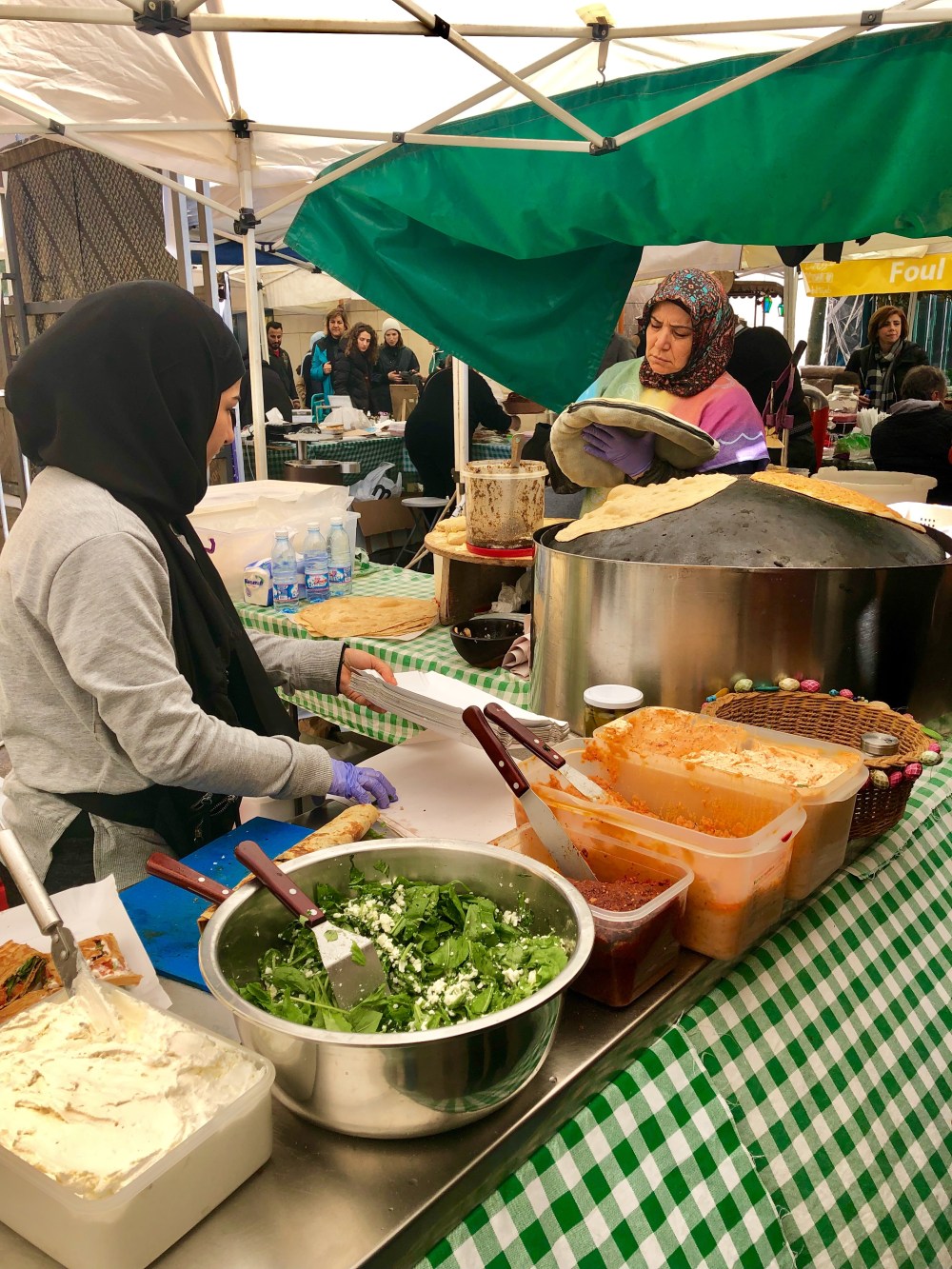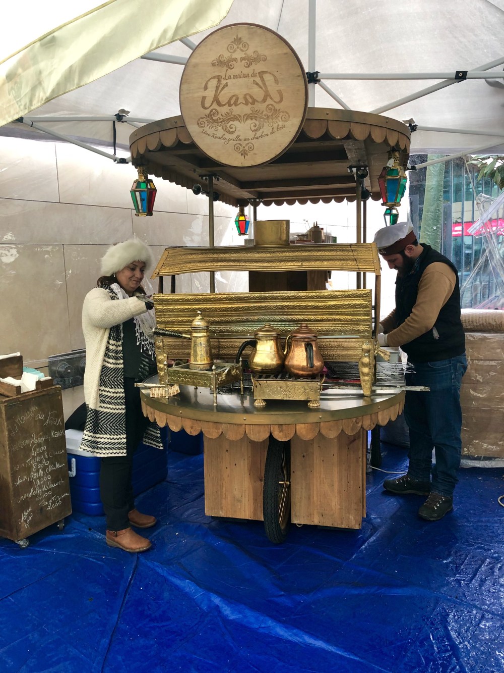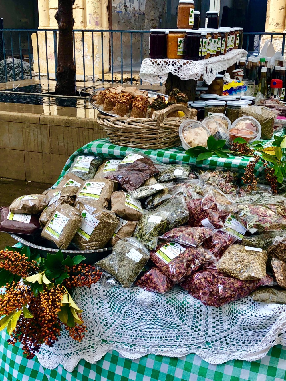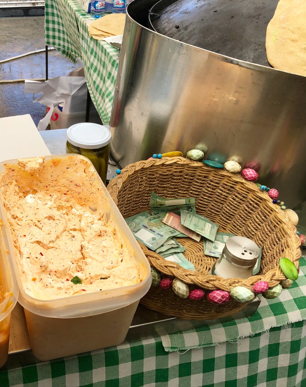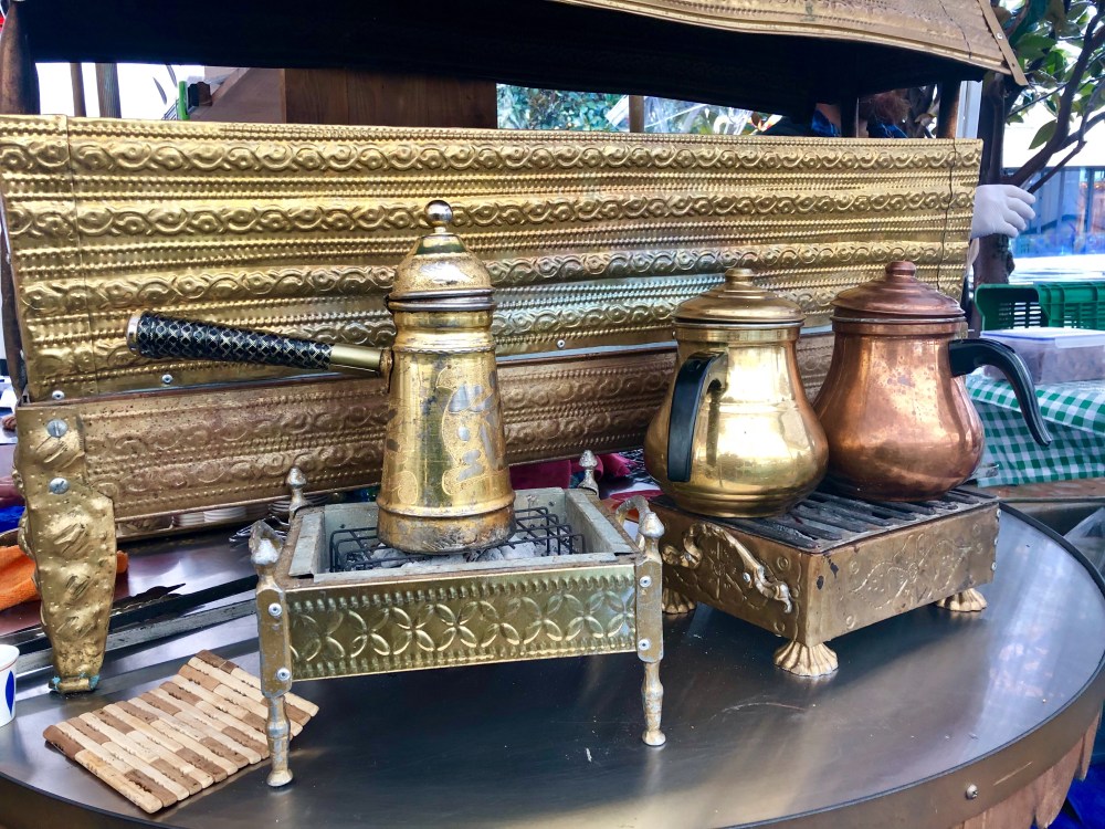 ci dessous : Le souk alimentaire (j’aurais pu y passer mes journées ! 😋). Le café libanais préparé traditionnellement avec le charbon. Sur certains étales, on voit des paniers avec de l’argent. C’est la caisse et c’est le client qui gère : il met directement ce qu’il doit et récupère lui même sa monnaie si besoin.