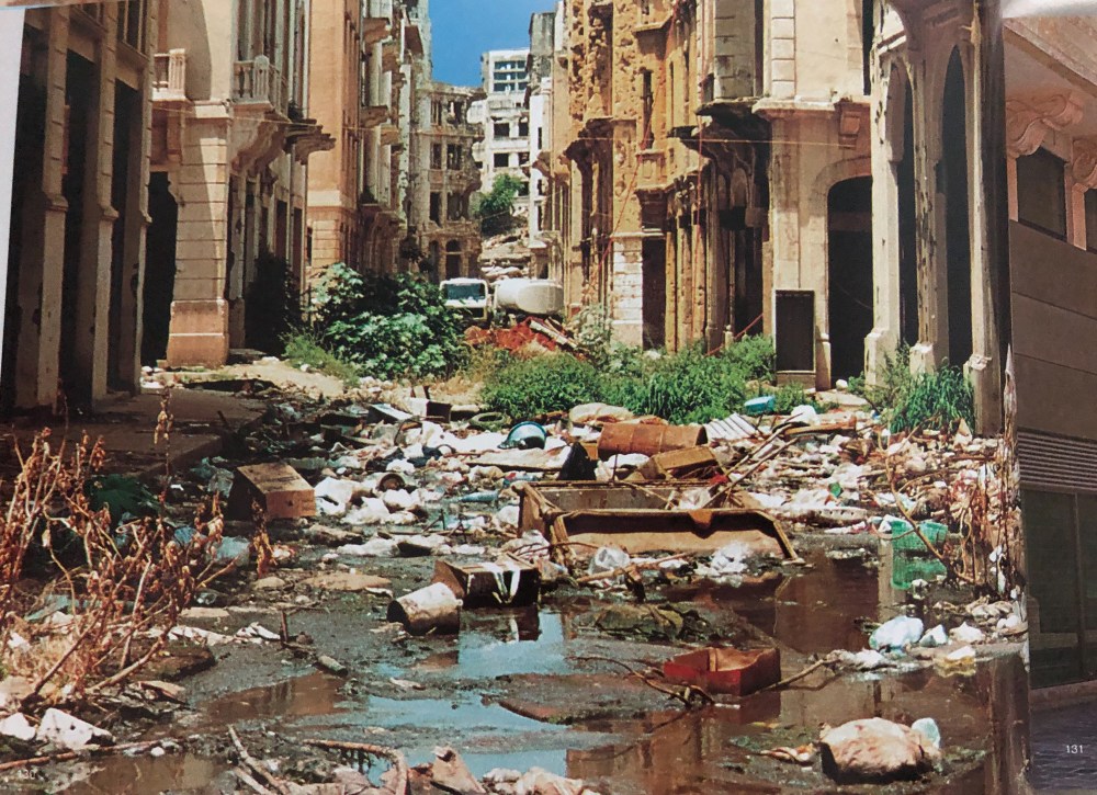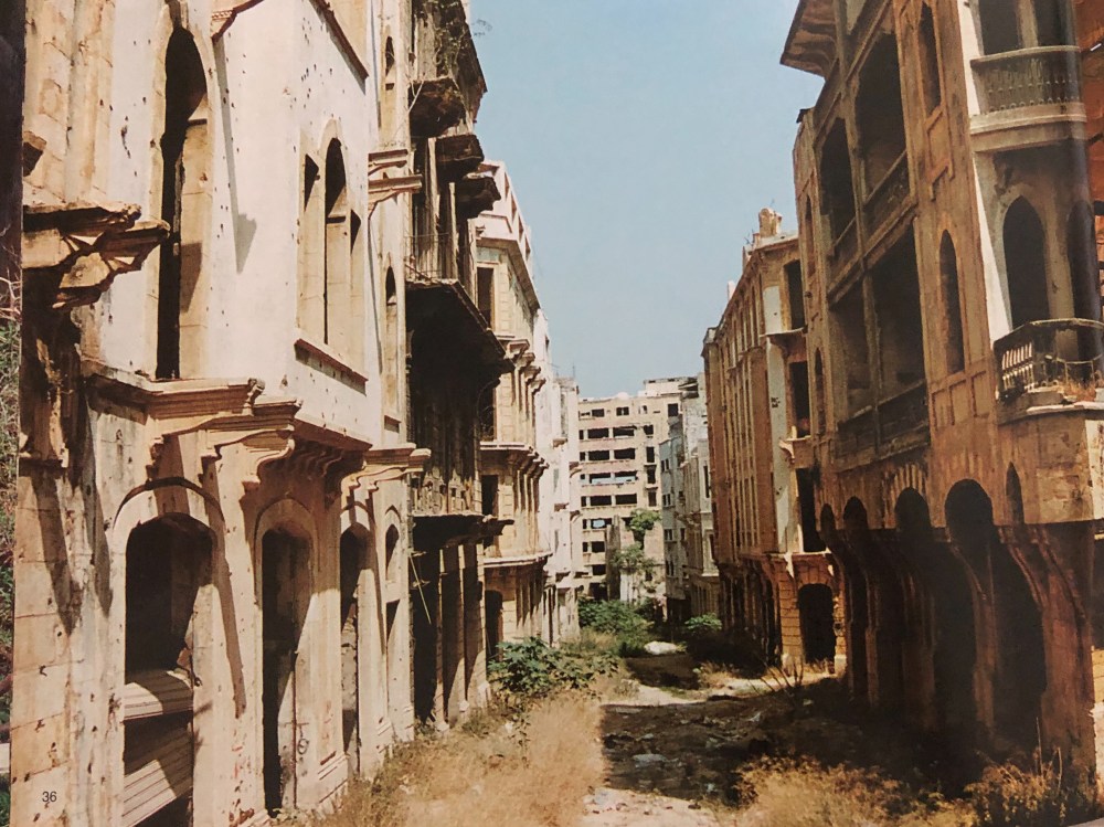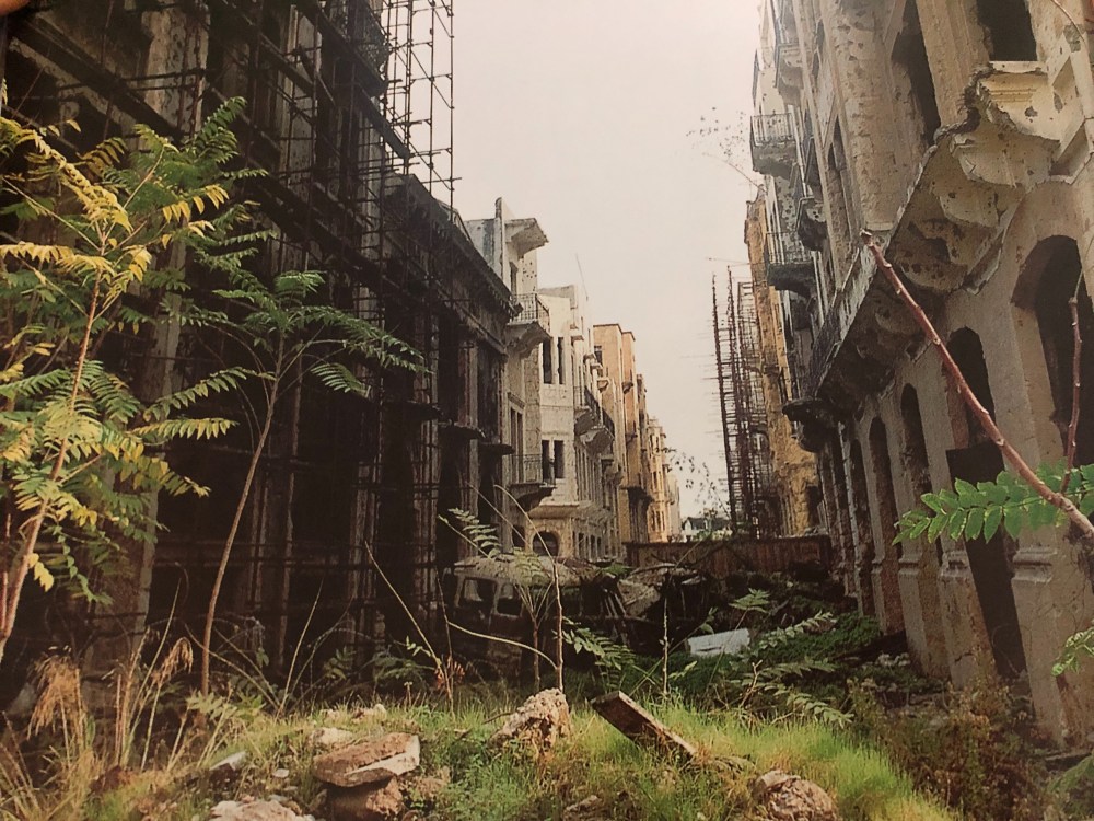 Riche de 6 000 ans d’histoire, (Paris a moins de 2 300 ans), la première Beyrouth est celle des Cananéens, civilisation de l’âge de bronze ! Un tremblement de terre au 6ème siècle, puis un raz de marée, suivi d’un incendie qui la réduisit en cendres, des séismes à répétition (cf note 1)… jusqu’à la guerre de 1975-90, Beyrouth fut maintes fois détruite et maintes fois reconstruite, inlassablement. Mille feuilles de strates architecturales, les monuments sont bâtis sur les décombres de plus anciens, eux mêmes érigés sur d’encore plus anciennes ruines. Ces vestiges attestent des multiples civilisations qui s’y sont succédées, phénicienne, assyrienne, perse, égyptienne, romaine, byzantine, arabo-musulmane…etc. Au cours des 15 années que dura la guerre du Liban, le cœur de la ville, zone de combat désertée par la population civile, est un terrain envahi de gravats et d’une végétation sauvage par endroits impraticable. Un quasi no man’s land assujetti par les combattants que quelques hères sans toit parcourent furtivement, obligés là par la misère. La « Khat Tamass », ligne de contact entre les secteurs majoritairement musulmans de Beyrouth-Ouest et ceux majoritairement chrétiens de Beyrouth-Est, est de ce fait renommée la ligne verte. Des quartiers entiers sont détruits, le centre ville est le siège des bombardements et en dépit de la reconstruction, certains endroits donnent encore aujourd’hui l’impression que la guerre s’est arrêtée hier. Aujourd’hui où, à quelques mètres de ces îlots de désolation, des immeubles flambants neufs règnent. C’est impeccable et soigné, mais sans âme. Si l’ex 1er ministre Rafik Hariri, n’a pas ménagé ses efforts à le faire renaître, il n’est pas arrivé à ce que les habitants se retrouvent dans ce Beyrouth propret, qui donne parfois la sensation d’être si artificiel qu’on pourrait croire à un décor de cinéma. Aussi, jamais réinvestis par les beyrouthins, ces quartiers désertiques, de jungle et de ruines, ont- ils laissé place à des quartiers désertés, d’enseignes de luxe et de banques, vides.