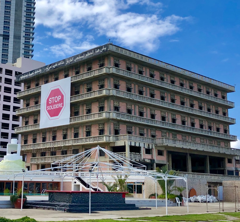 L’hotel ST. Georges très endommagé pendant la guerre est emblématique des tensions autour du projet Solidère. Le propriétaire, Fadi el-Khoury, multimillionnaire ayant les moyens de s’opposer à Hariri, refusa de vendre, évoquant une entreprise corrompue, mafieuse. Il conserva son établissement en l’état, comme symbole. Il tenta d’empêcher, en vain, la construction de la marina qui vient couper l’accès de son hôtel à la mer. Il suspendit une large banderole sur la façade de l’hôtel sur laquelle sont inscrits les mots » STOP SOLIDERE « . Jusqu’au 14 février 2005. Ce jour-là, une camionnette piégée tue Rafic Hariri. Son explosion ravage le quartier, brise toutes les vitres alentour, abat un vieil immeuble et abîme considérablement le St Georges déjà bien amoché. En 2014, une statue représentant le Premier ministre disparu est érigée face à l’hôtel !