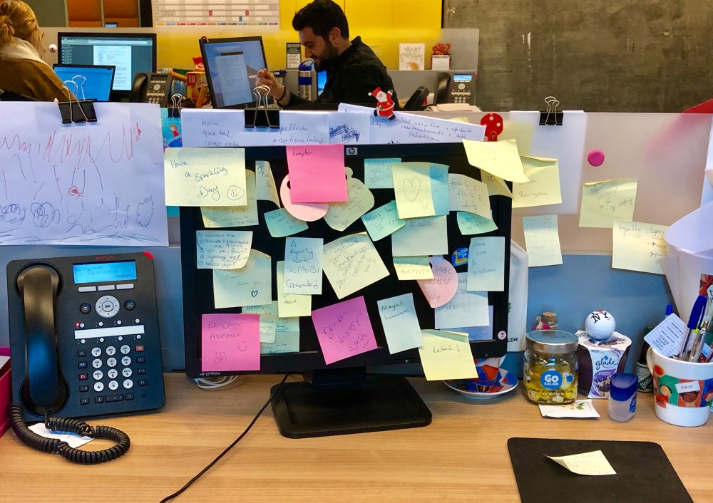 Geneviève, Sarkis, Craquinette (ou Biscotte, ou Cracotte, ou Croquette, bref, je sais plus, mais ça se mange et c’est croquant) et moi, quand Bernadette est subitement prise de l’envie de nous prendre en photo parce que « Oh, vous êtes trop beaux tous les 3 dans le couloir ! Attendez, attendez, je vais chercher l’appareil » 😁